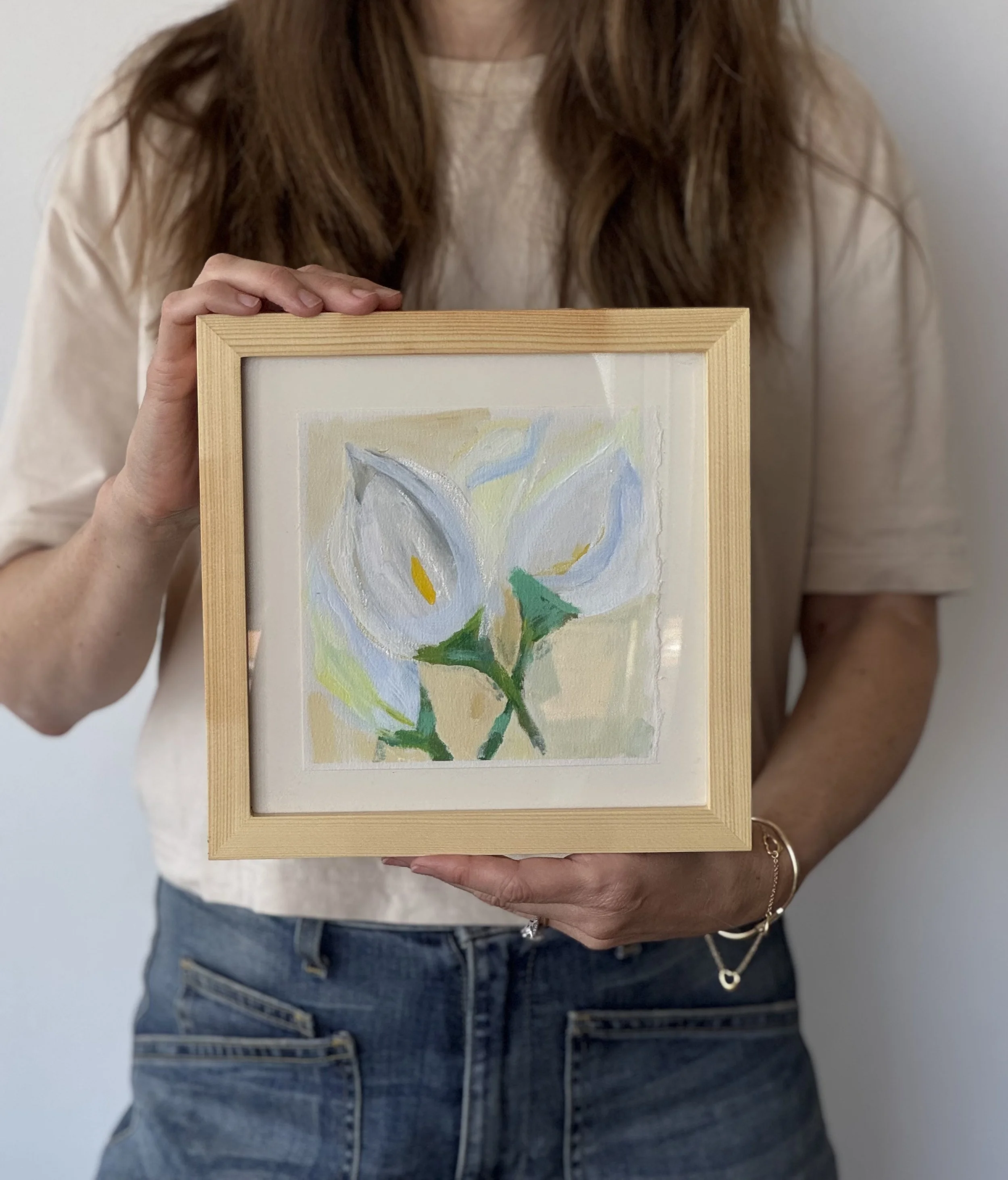 Original acrylic painting on paper framed in natural wood frame with custom matting