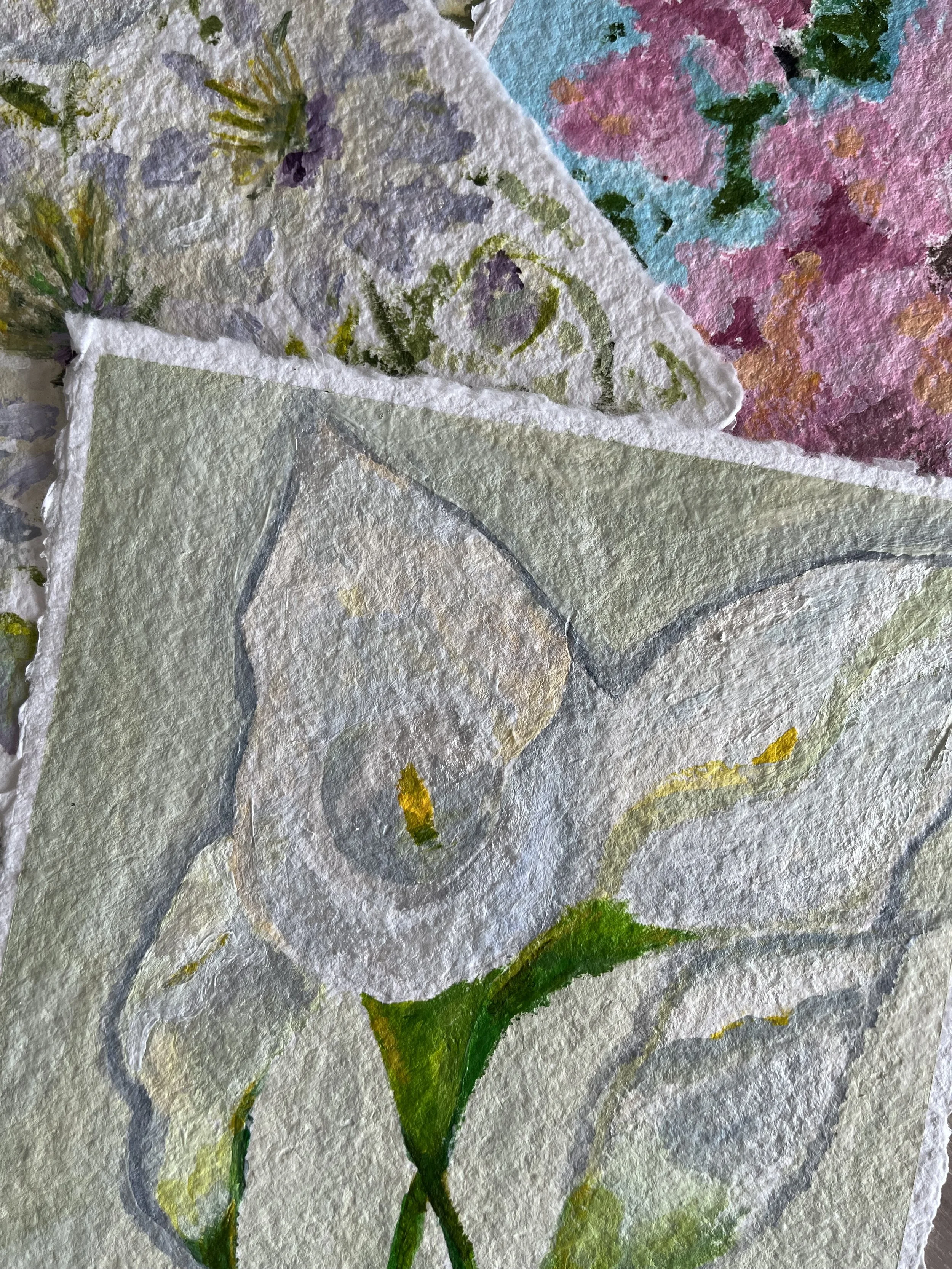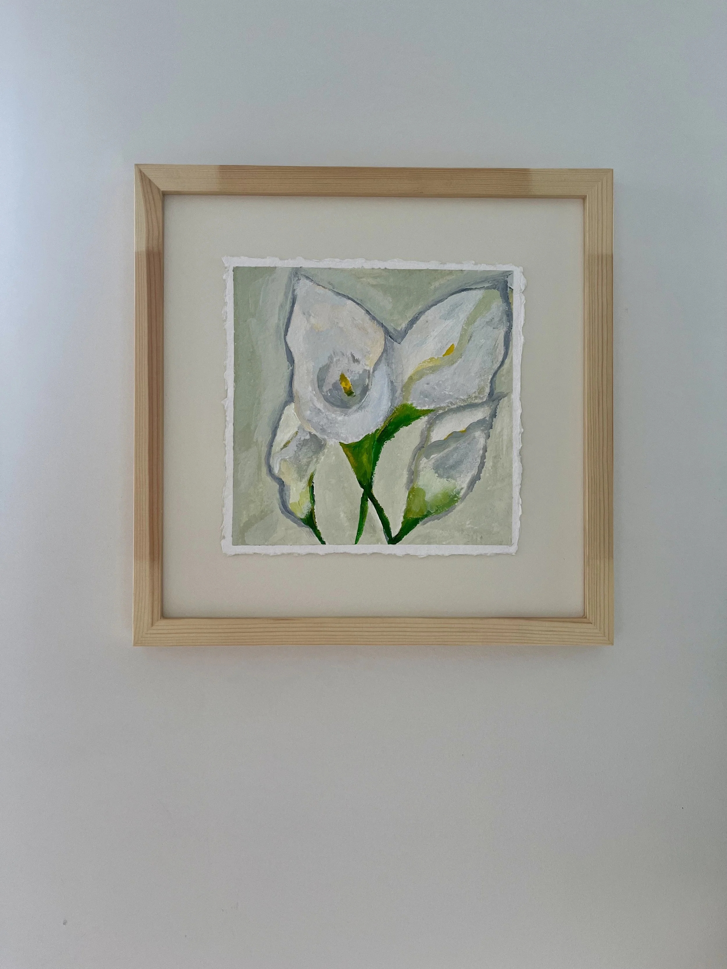 Original acrylic painting on paper framed in natural wood frame with custom matting